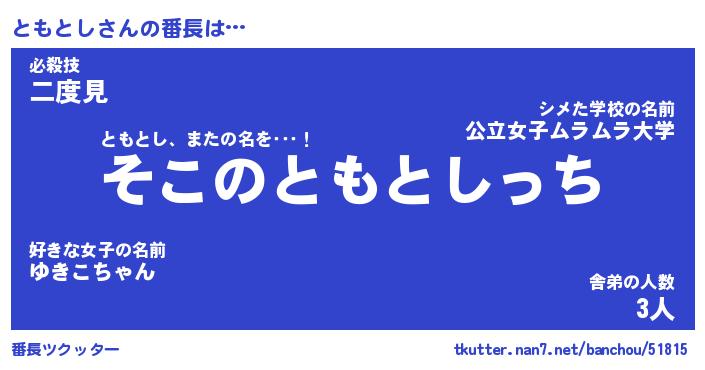 | 意味不明あだ名 | 『ペロリンともとし』『永久保存ともとし』 |