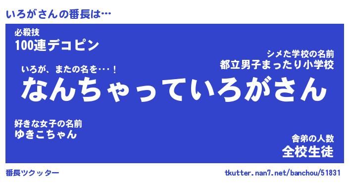 | ヒーロー風カッコイイあだ名 | 『スーパーイロガ』『ウルトラいろがマン』 |