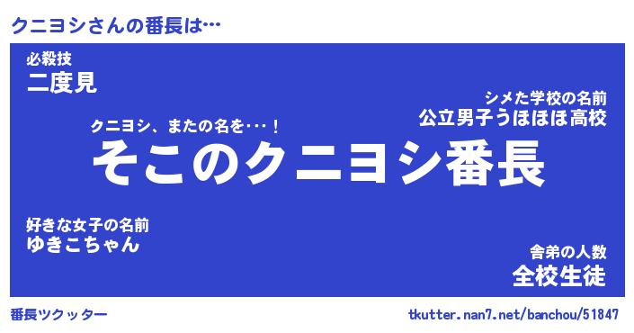 | 意味不明あだ名 | 『ペロリンクニヨシ』『永久保存クニヨシ』 |