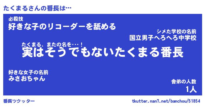 | ヘコむあだ名 | 『たくもー』『酢こんぶ』『たくを』 |