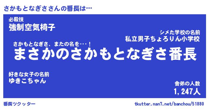 | 伝説のあだ名 | 『伝説のスナイパーさかもとなぎさ』 |