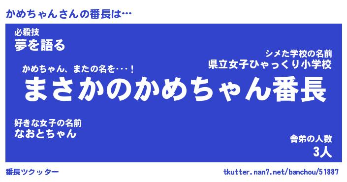 | 肩書あだ名 | 『かめちゃん社長令嬢』『かめちゃん班長』 |