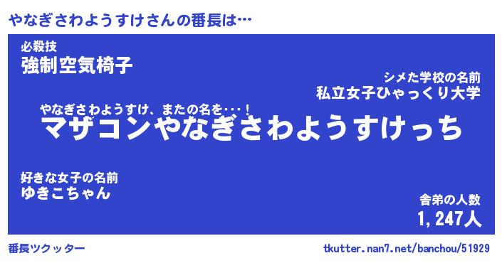 | 肩書あだ名 | 『やなぎさわようすけ店長』 |