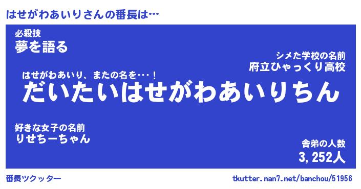 | ポケモン風あだ名 | 『ハセチュウ』『ハセガダネ』 |
