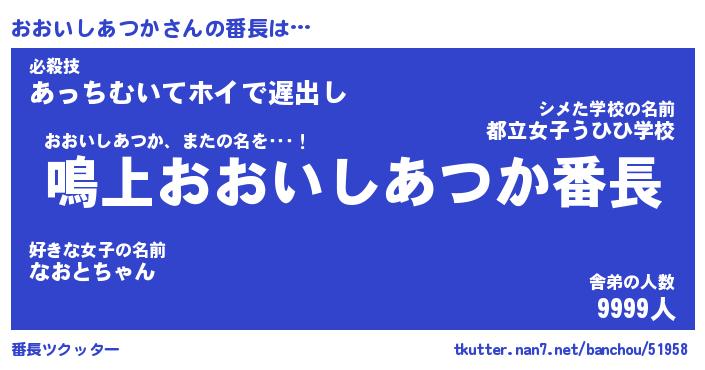 | 胡散臭い通販商品みたいなあだ名 | 『億万長者になれるブレスレット…その名も「おおいしあつか」』 |