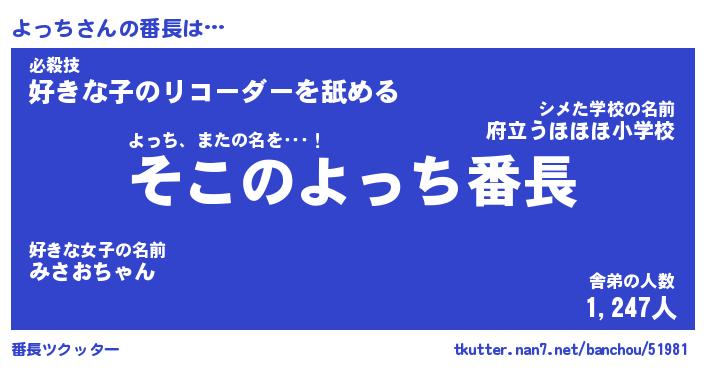 | 意味不明あだ名 | 『ペロリンよっち』『よっちフォーエバー』 |