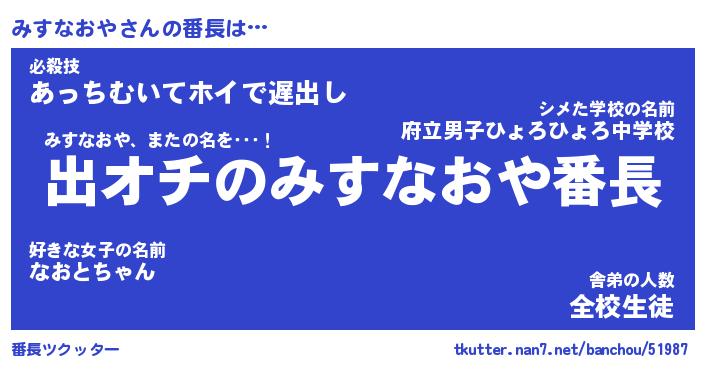 | 肩書あだ名 | 『みすなおや社長』『みすなおや国家主席』 |