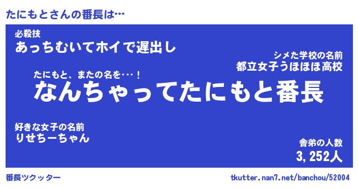 | ヒーロー風カッコイイあだ名 | 『スーパータニモト』『天弓騎士タニ』 |