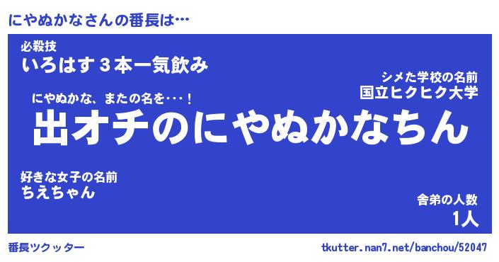 | ファンタジー風あだ名 | 『ニヤフェル』『エターナルニヤヌカナー』 |