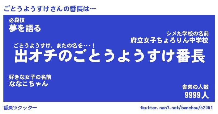 | ピコ太郎風あだ名 | 『ゴコ四郎』『ピゴ一郎』『ゴト六郎』 |