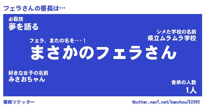 | ヒーロー風カッコイイあだ名 | 『スーパーフェラ』『ウルトラフェラマン』 |