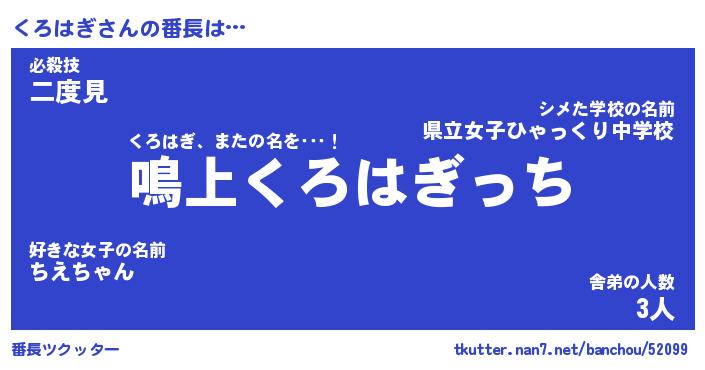 | ヘコむあだ名 | 『くろっふぃ~』『牛乳』『くろを』 |