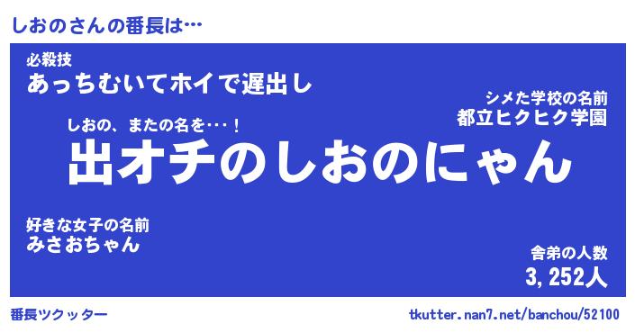 | 意味不明あだ名 | 『ペロリンしおの』『しおのフォーエバー』 |