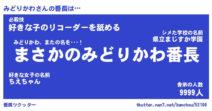 | ヒーロー風カッコイイあだ名 | 『スーパーミドリカワ』『天弓騎士ミド』 |