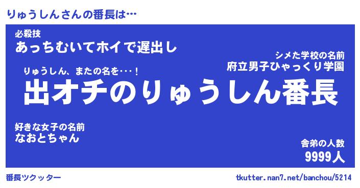 | 伝説のあだ名 | 『伝説のスナイパーりゅうしん』 |