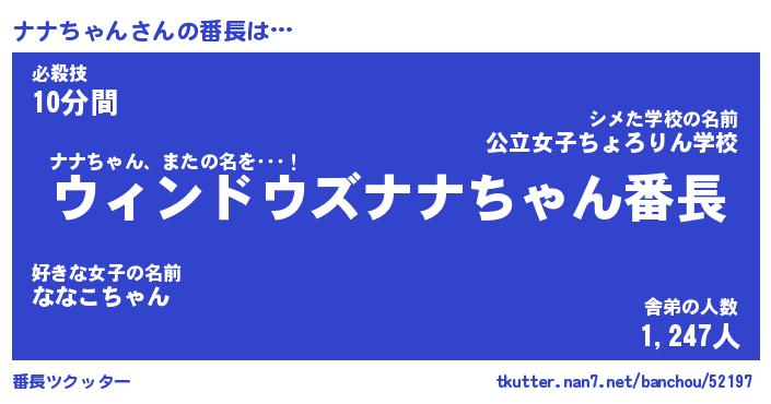 | ヒーロー風カッコイイあだ名 | 『スーパーナナチャン』『銀牙騎士ナナ』 |