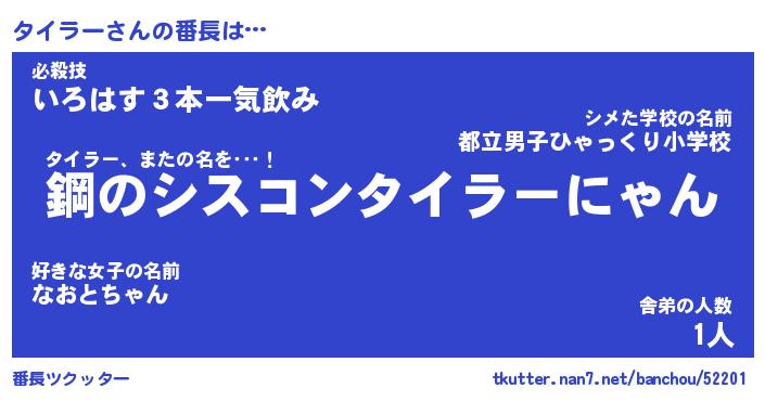 | ファンタジー風あだ名 | 『タイフェル』『エターナルタイラーー』 |