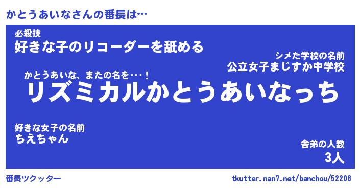 | 意味不明あだ名 | 『ペロリンかとうあいな』 |