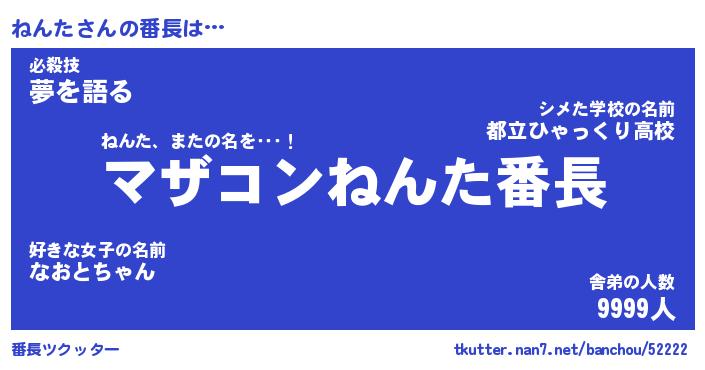 | 意味不明あだ名 | 『ペロリンねんた』『ねんたフォーエバー』 |