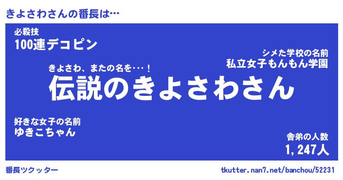 | ピコ太郎風あだ名 | 『キコ一郎』『ピキ四郎』『キヨ次郎』 |