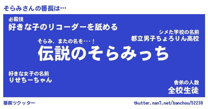 | 肩書あだ名 | 『そらみ社長令嬢』『そらみ総理大臣』 |
