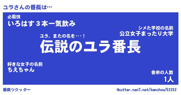 | ヘコむあだ名 | 『ユラにー』『なまこ酢』『ユラ太郎』 |