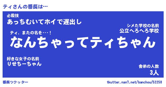 | ヘコむあだ名 | 『ティにゅー』『レバニラ』『ティお』 |