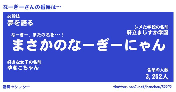 | 意味不明あだ名 | 『ペロリンなーぎー』『永久保存なーぎー』 |