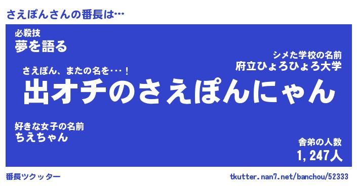 | 意味不明あだ名 | 『ペロリンさえぽん』『永久保存さえぽん』 |