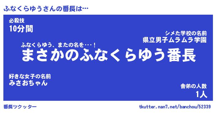 | 伝説のあだ名 | 『伝説のスナイパーふなくらゆう』 |