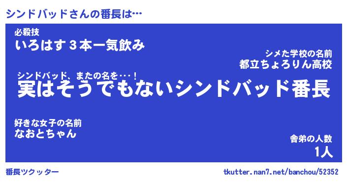 | 伝説のあだ名 | 『封印されしスナイパーシンドバッド』 |