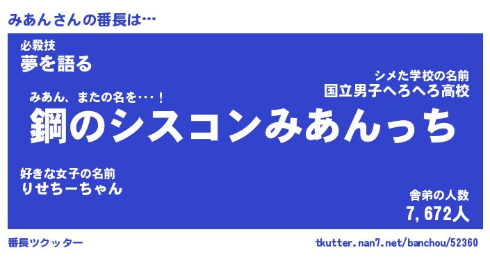 | 意味不明あだ名 | 『ペロリンみあん』『みあんフォーエバー』 |