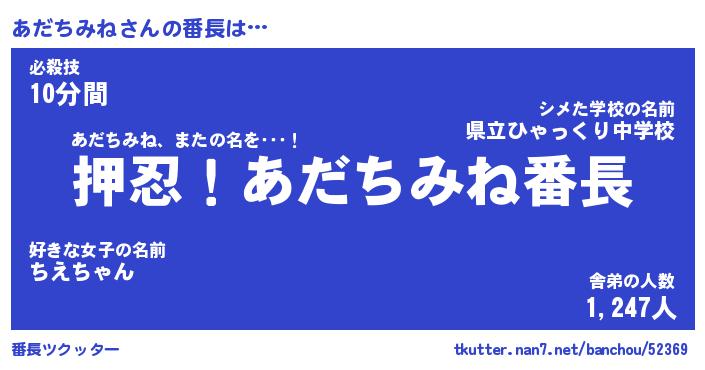 | ヒーロー風カッコイイあだ名 | 『スーパーアダチミネ』『銀牙騎士アダ』 |