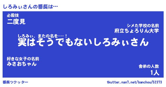 | 肩書あだ名 | 『しろみぃ御曹司』『しろみぃ国家主席』 |