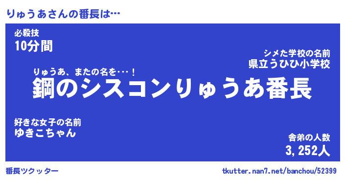 | 意味不明あだ名 | 『ペロリンりゅうあ』『永久保存りゅうあ』 |