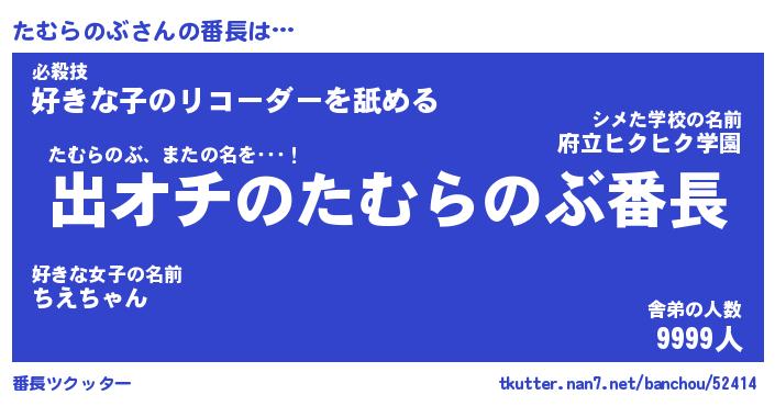 | 肩書あだ名 | 『たむらのぶ店長』『たむらのぶ総理大臣』 |