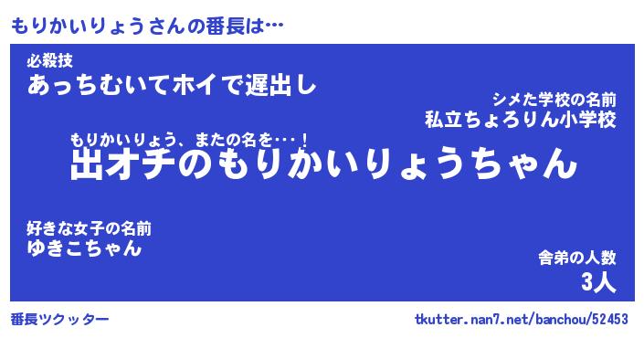| 男性向けラノベタイトル風あだ名 | 『もりかいりょうの憂鬱』 |
