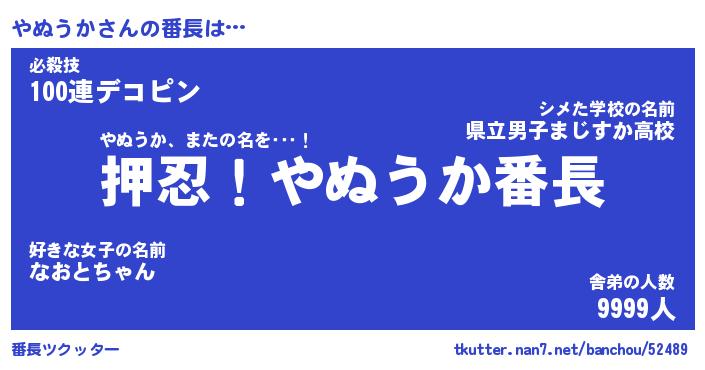 | 意味不明あだ名 | 『ペロリンやぬうか』『永久保存やぬうか』 |