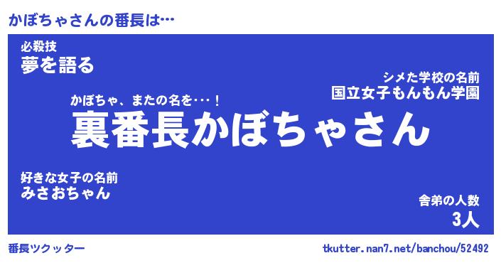 | ヘコむあだ名 | 『かぼにー』『豆乳』『かぼっ子』 |