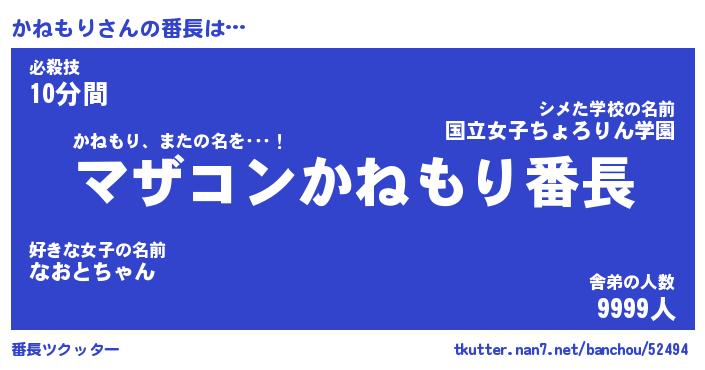 | 意味不明あだ名 | 『ペロリンかねもり』『永久保存かねもり』 |