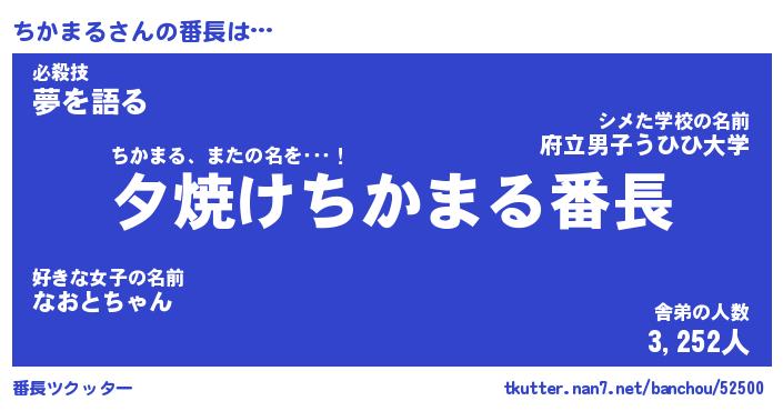 | ファンタジー風あだ名 | 『チカフェル』『エターナルチカマルー』 |