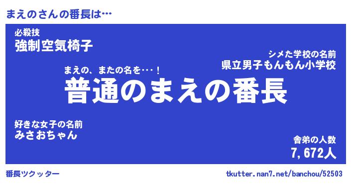 | ピコ太郎風あだ名 | 『マコ三郎』『ピマ五郎』『マエ史郎』 |