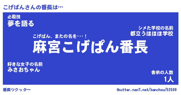 | ヘコむあだ名 | 『こげにー』『豆乳』『こげっちょ』 |