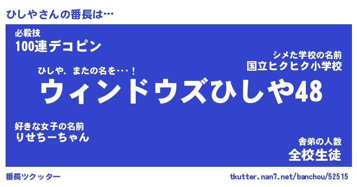 | 肩書あだ名 | 『ひしや社長』『ひしや総理大臣』 |