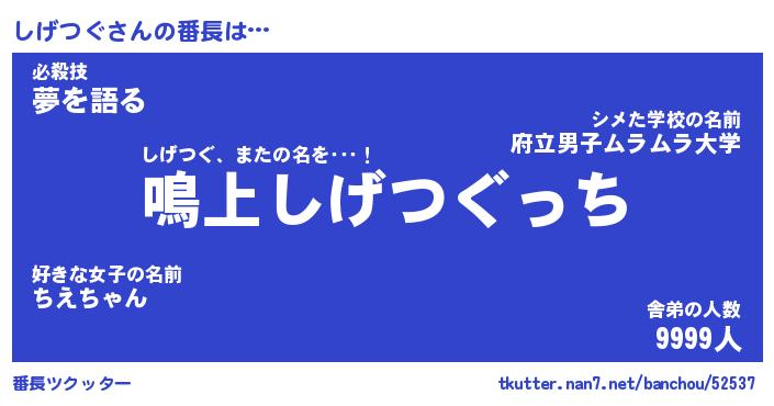 | 意味不明あだ名 | 『ペロリンしげつぐ』『永久保存しげつぐ』 |
