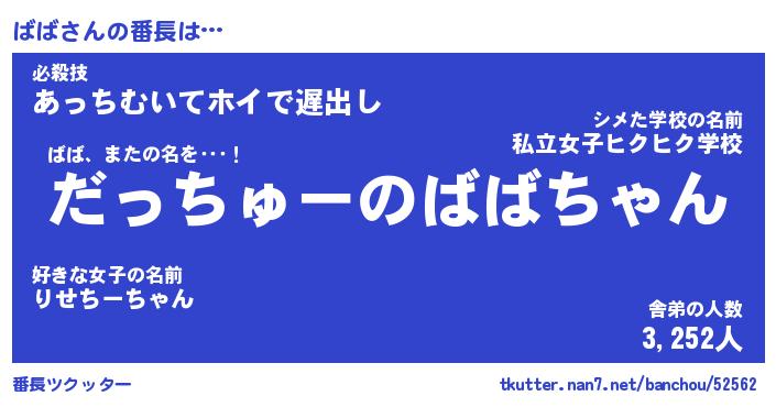| ポケモン風あだ名 | 『ババチュウ』『ババダネ』『ヒババ』 |