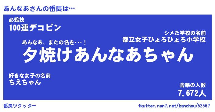 | 2回繰り返すあだ名 | 『あんあん』『ああんん』『ぬらぬら』 |