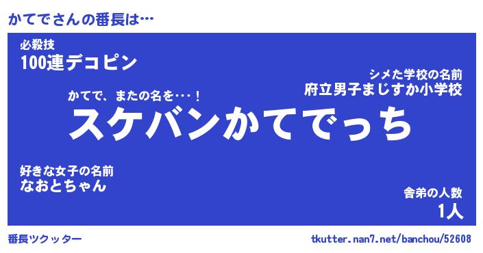 | ヒーロー風カッコイイあだ名 | 『スーパーカテデ』『ウルトラかてでマン』 |