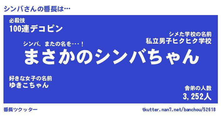 | 2回繰り返すあだ名 | 『シンシン』『シシンン』『ぬめぬめ』 |