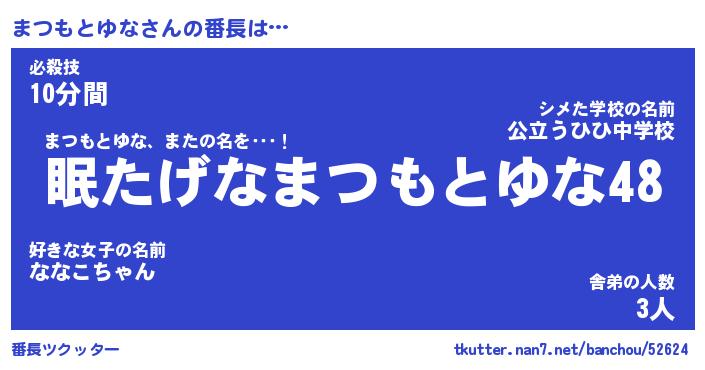 | 肩書あだ名 | 『まつもとゆな社長』『まつもとゆな班長』 |